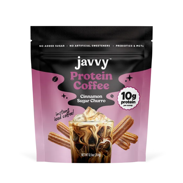 Buttery vanilla and chocolate chip–flavored coffee with premium whey protein